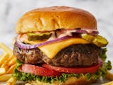 Angus beef, provolone, tomato, lettuce, and mayo on a toasted brioche bun.