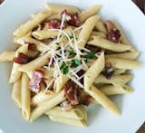 Smoked bacon and fresh mushrooms in our cream sauce, served over spaghetti.